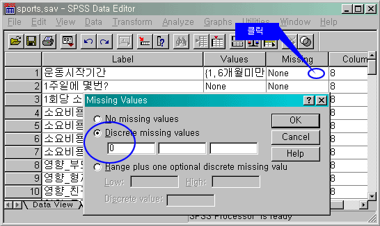 ¿©±â¼ "Discrete missing values"¸¦ ¼±ÅÃÇÏ°í °ªÀ» "0"À¸·Î ÀÔ·ÂÇϰí [OK] ´ÜÃ߸¦ Ŭ¸¯ÇÕ´Ï´Ù.
