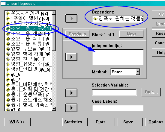 Á¾¼Óº¯ÀÎ(¹®Ç×)À» ¼±ÅÃÇØ [Dependent]·Î, µ¶¸³º¯ÀÎÀ» [Independent(s)]·Î ¢º ¸¦ ÀÌ¿ëÇØ À̵¿½Ãŵ´Ï´Ù.