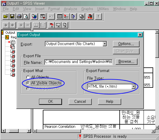 File TypeÀ» "HTML"·Î ¼±ÅÃÇϰí "All Visible Objects" ¸¦ ¼±ÅÃÇÑ ´ÙÀ½ File NameÀ» Á¤ÇØ ÀúÀåÇÕ´Ï´Ù.